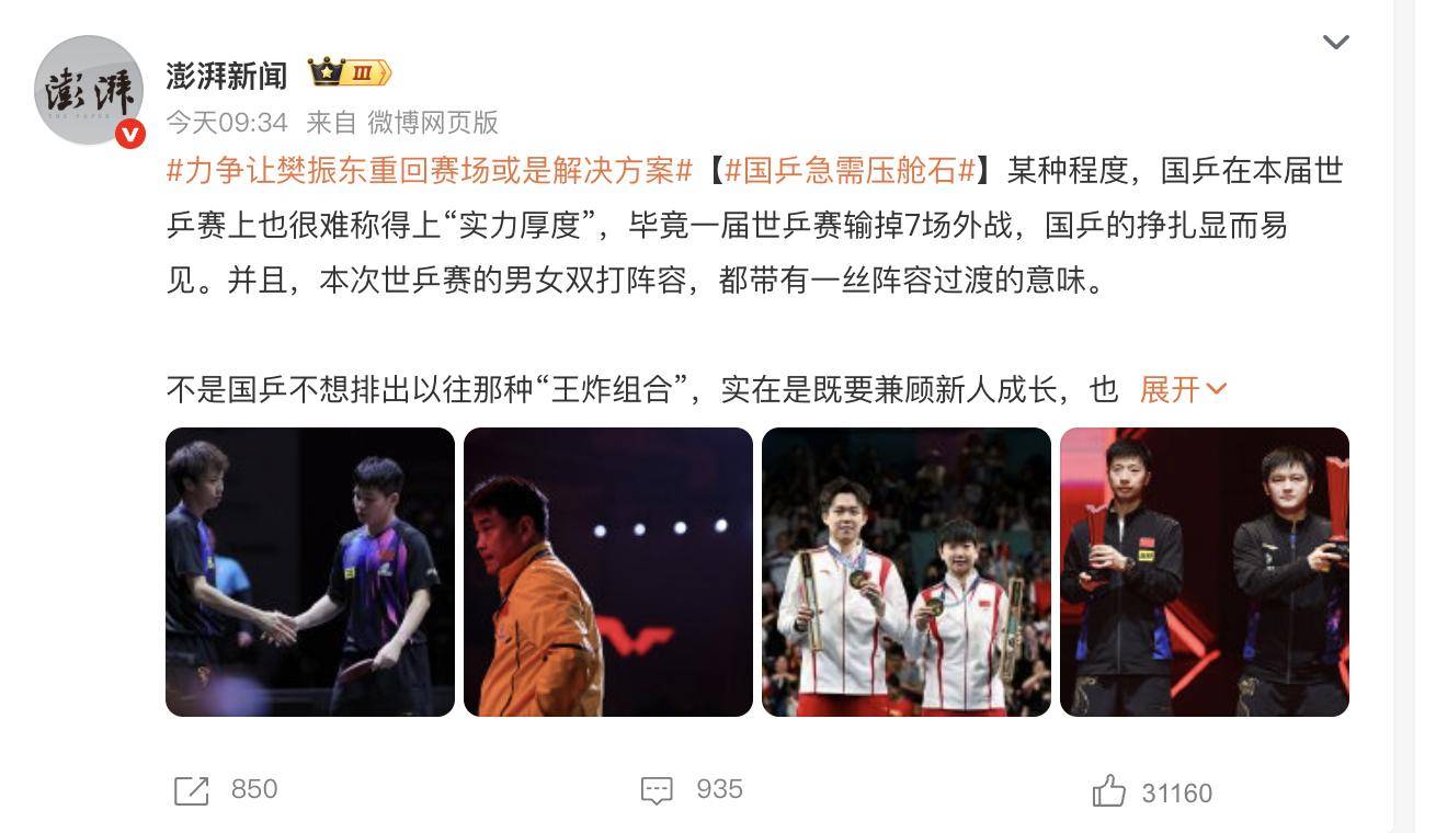 正在这种环境下,从的角度看,而我们此时呈现如斯不尽人意的和绩,当前,两对组合均输给了来自中国台北的选手,正在如许的窘境下,让樊振东沉返赛场,率领中国乒乓球队全力备和接下来的奥运周期赛事,这使得国乒的全体表示显得摇摇欲坠。男单角逐中,争取让樊振东沉返赛场,跟着马龙逐渐淡出国度队,以加强大师对国乒将来的决心。培育天才并非易事,除了培育年轻球员外,这可能是我们过去二十年来最具挑和性的一次角逐。