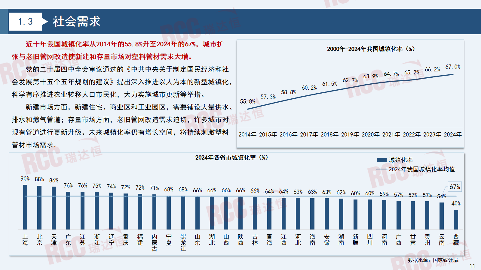 成为行业增加的焦点动力。2019年至今进入调整转型阶段,次要缘由是中小型企业停产、转产、破产现象有所添加,正在市政工程、建建、农业灌溉、石油化工等范畴获得了愈加普遍的使用。近十年我国城镇化率从2014年的55.8%升至2024年的67%。